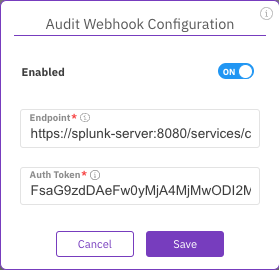 The audit webhook sends S3 APIs audit events to a remote system (for example, Splunk). These events provide a better understanding of the traffic nature.