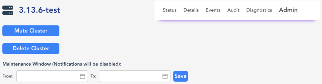 The following is an example showing when the cluster was muted and when it was placed into a maintenance window.