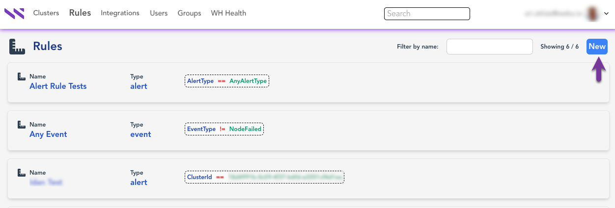 4. On the **Rules** page, select **New**.