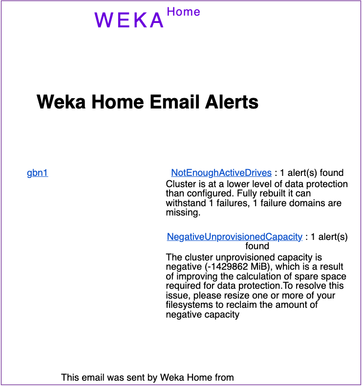 <figure><img src="https://1916840177-files.gitbook.io/~/files/v0/b/gitbook-x-prod.appspot.com/o/spaces%2FTUYL9RLgSDAkF2U90csR%2Fuploads%2F6qHnGlI8LxaIAFIrLS5f%2Flwh_email_alert_example.png?alt=media&#x26;token=a277bb6c-8525-4df1-88ee-58f758d49c93" alt=""><figcaption><p>Weka Home email alert example</p></figcaption></figure>