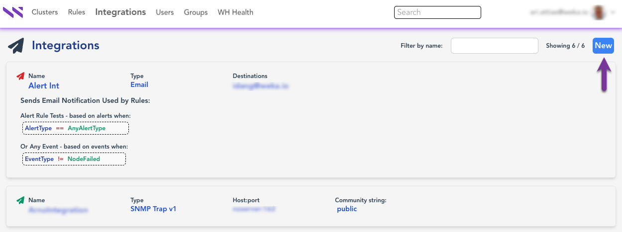2. On the **Integration** page, select **New**.