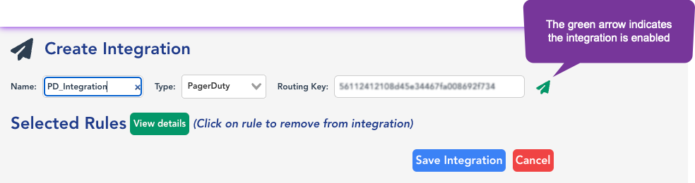 4. Verify that the integration is enabled (the arrow is green).