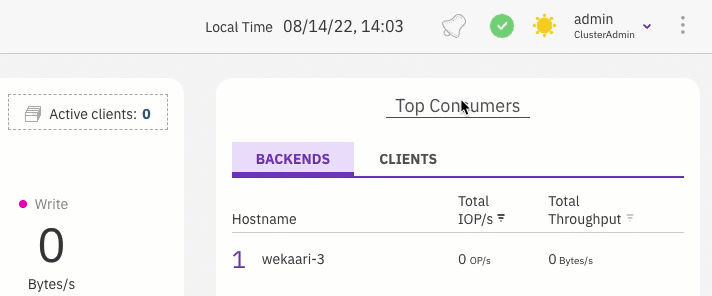 This widget shows the top 5 backend servers and clients in the system. You can sort the list of servers by total IO operations per second or total throughput.