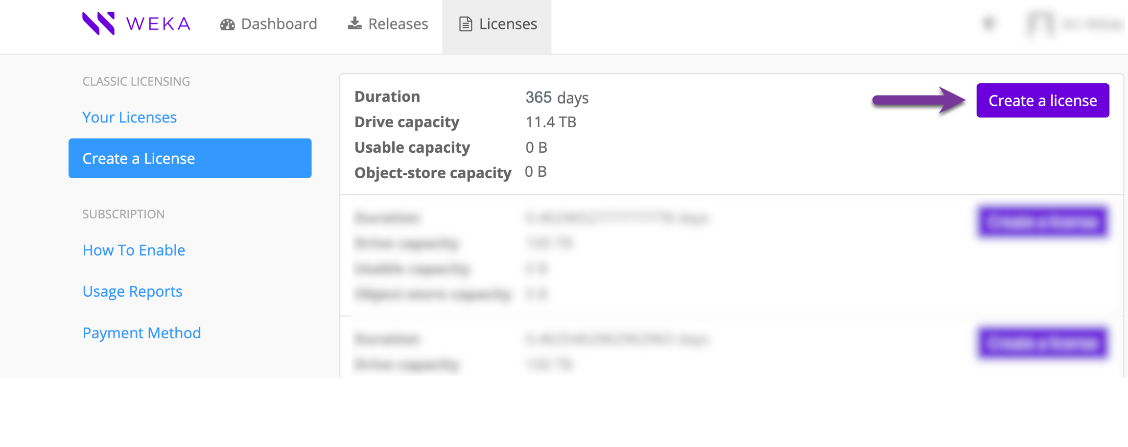 Learn how to obtain and apply a classic WEKA license, a time-based license purchased for a predetermined period, to your WEKA cluster.