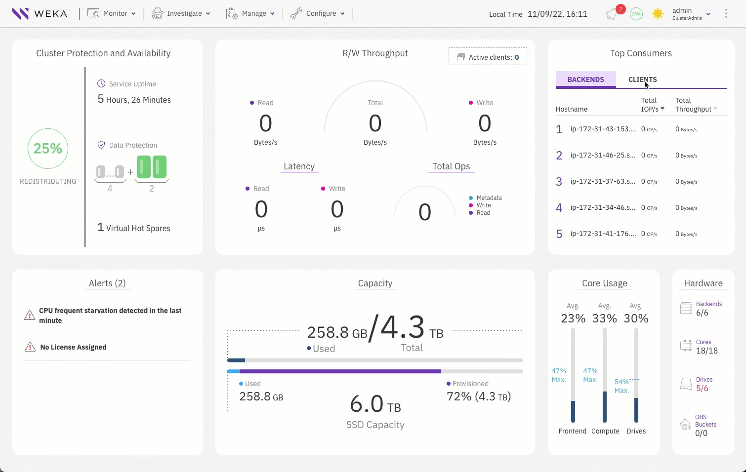 Access token: A short-lived token (valid for five minutes) used to access the WEKA system API and enable secure filesystem mounting.