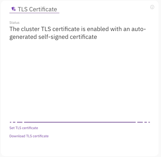 Upon system installation, the cluster's TLS certificate is activated with an auto-generated self-signed certificate, enabling access to the GUI, CLI, and API via HTTPS. If you have a custom TLS certificate, you may replace the auto-generated self-signed certificate with your own. Additionally, you can download the existing TLS certificate for integration with other applications that require communication with the cluster, such as Local WEKA Home.