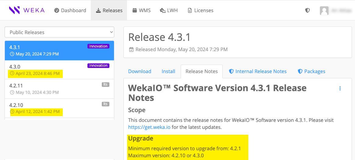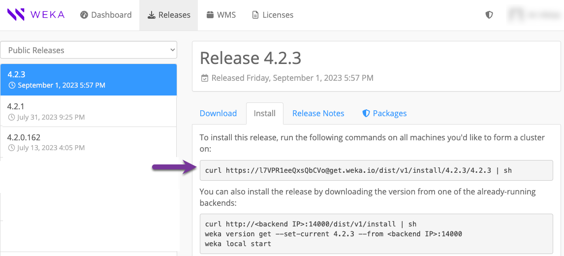 From the Public Releases on the get.weka.io, select the required release.