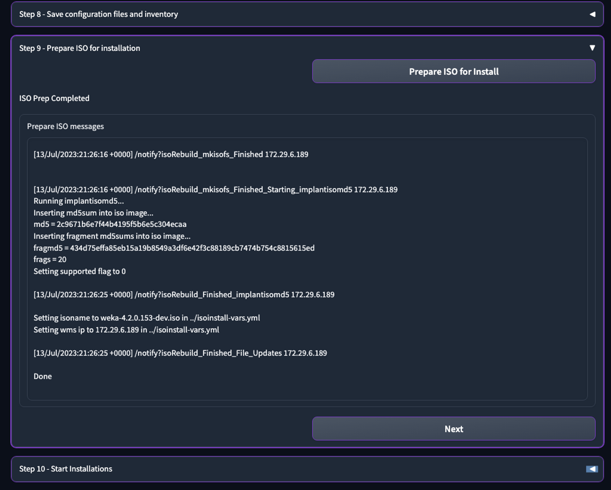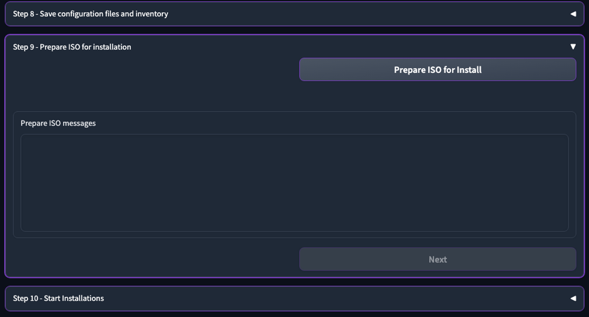 9. In **Step 9 - Prepare ISO for installation**, click **Prepare ISO for install**. \