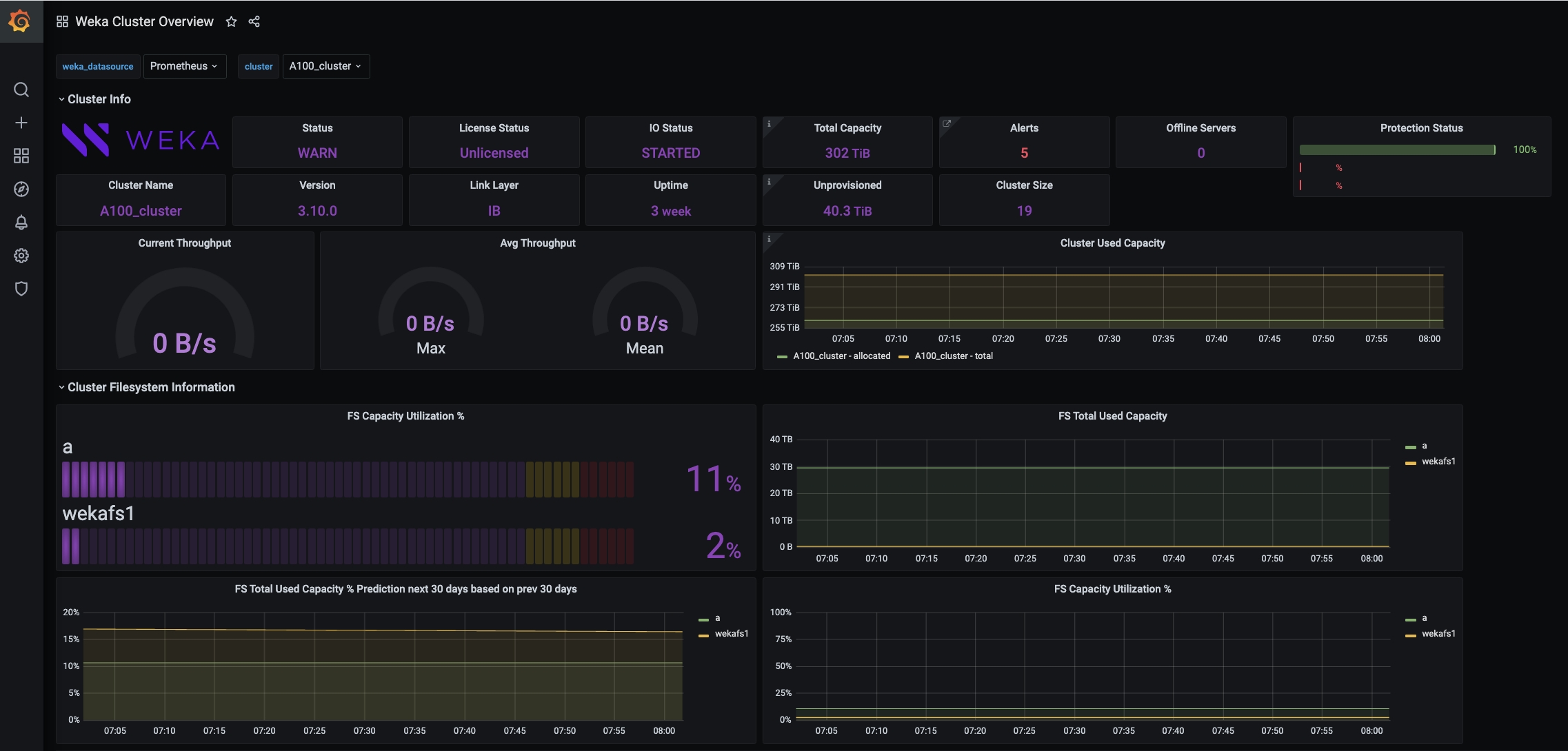 If you already use Grafana and Prometheus for other products, you can integrate WEKAmon to visualize all monitoring data on a unified dashboard.