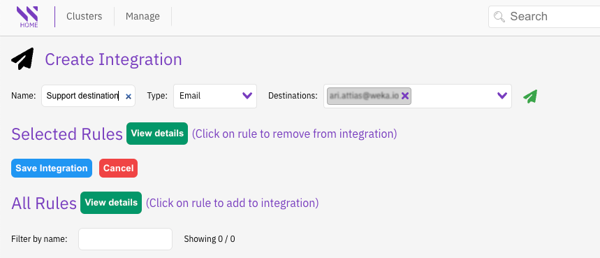 3. Select **View integrations** and select the required integration (destination) from the list.