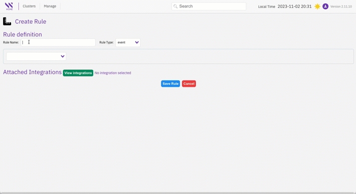 Create rules: On the Rules page, select the rule conditions to trigger specific alerts or events and assign the rule to the integration.