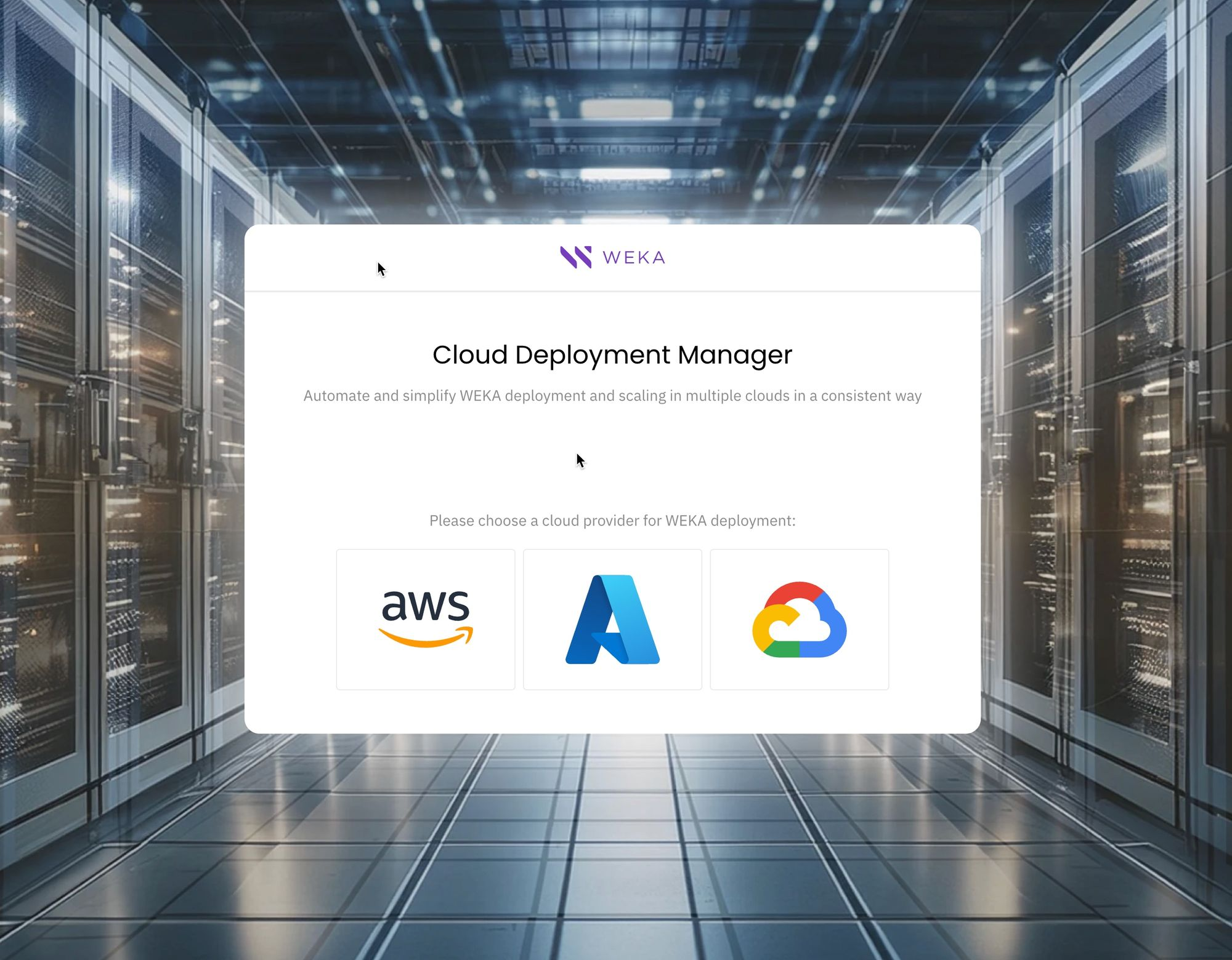 The WEKA Cloud Deployment Manager Web (CDM Web) simplifies the deployment of WEKA clusters in the AWS, Azure, and GCP public cloud environments. Leveraging WEKA’s validated Terraform deployment modules, the CDM provides a user-friendly interface to guide users through the initial configuration process.