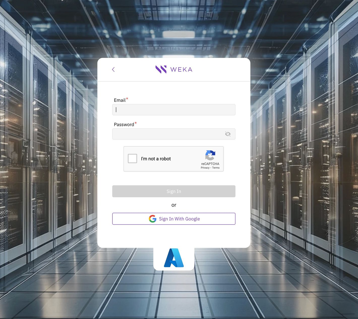 3. After selecting a public cloud, you are redirected to a login screen. Log in using your [get.weka.io](http://get.weka.io/) credentials. Internal WEKA users can use their Google SSO login to access CDM. Adhere to the following guidelines: