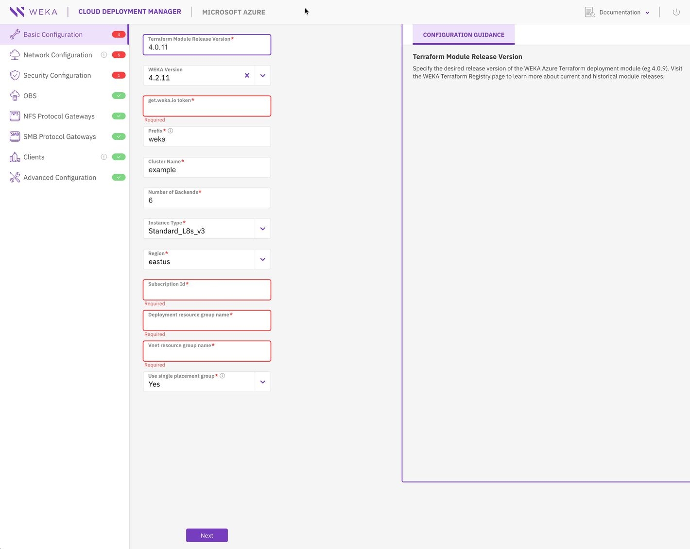 Web-hosted solution: The CDM is fully web-hosted, eliminating the need for downloads or installations. Users can quickly begin configuring their WEKA clusters.