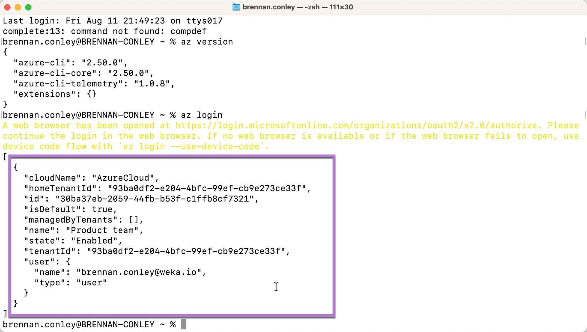 az login