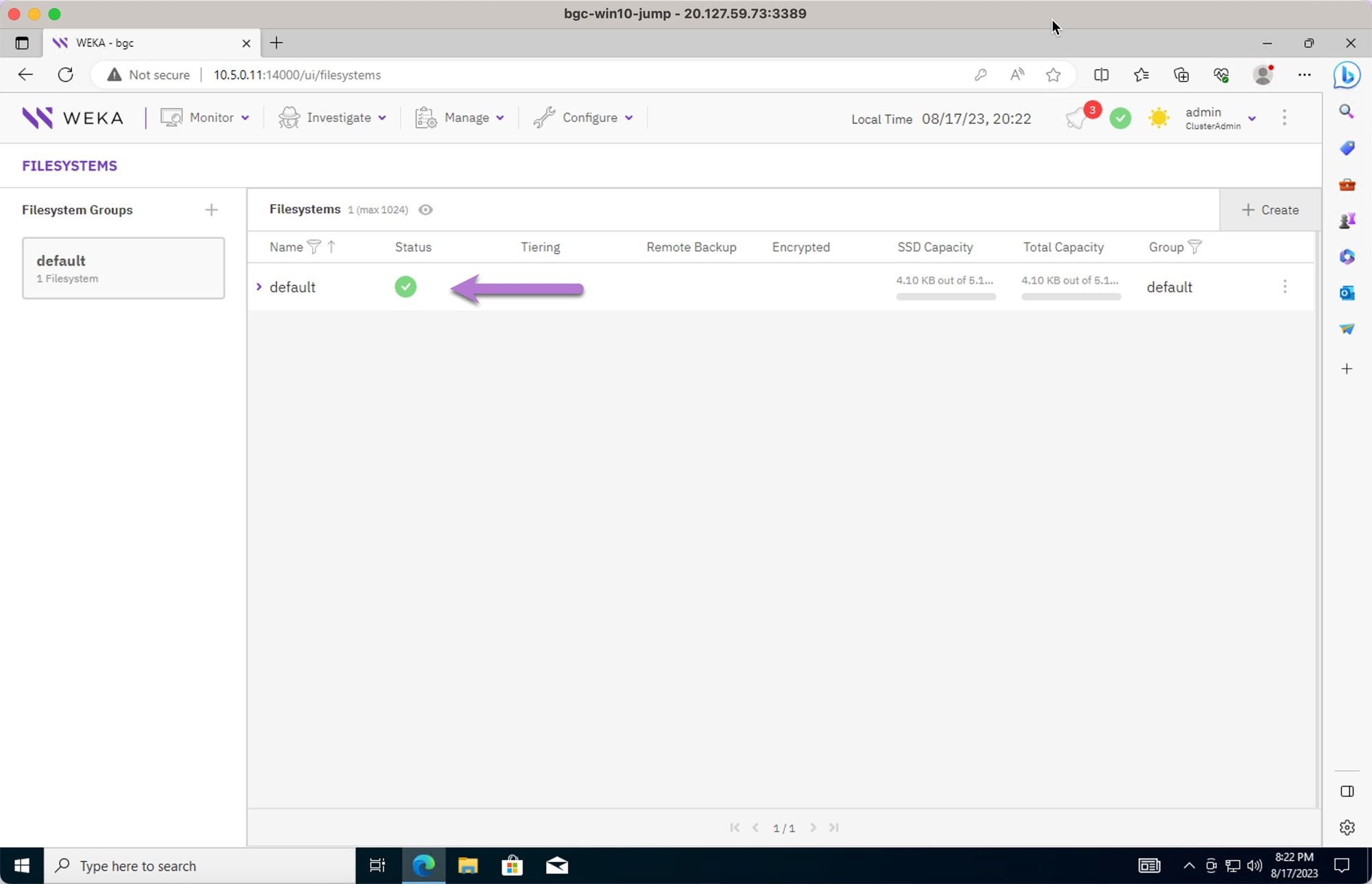 Verification of a successful of WEKA deployment.