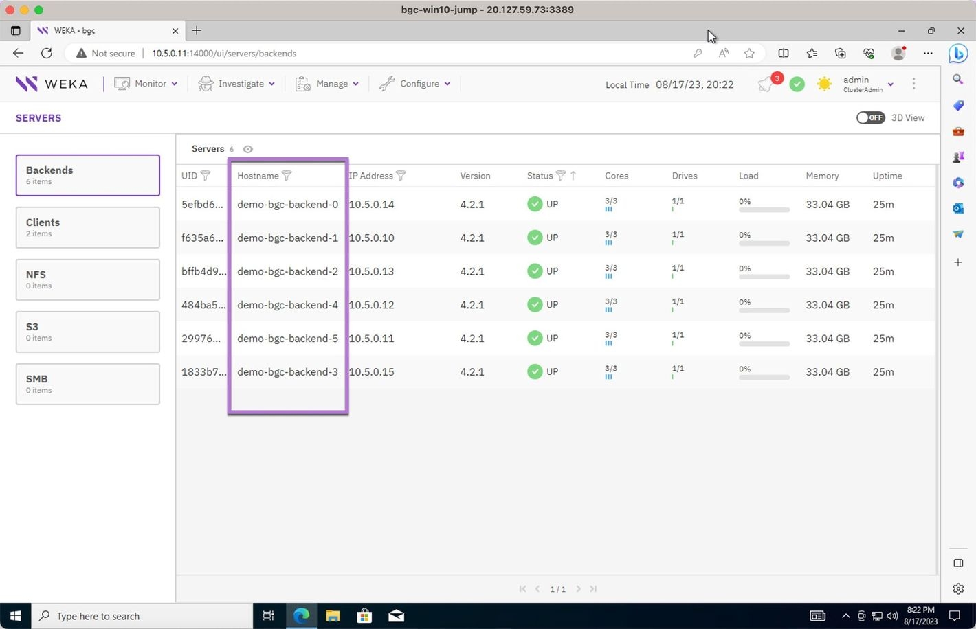 To access the WEKA GUI, use a jump host with a GUI deployed within the same VPC and subnet as the WEKA cluster.