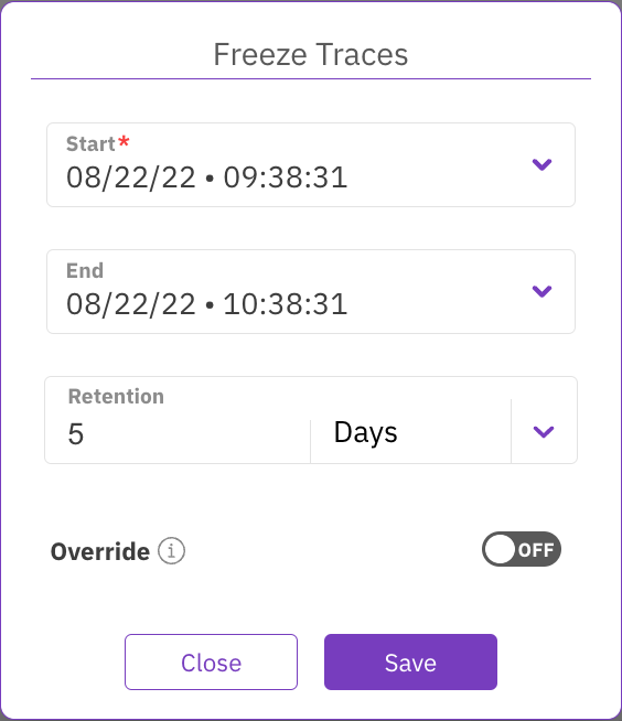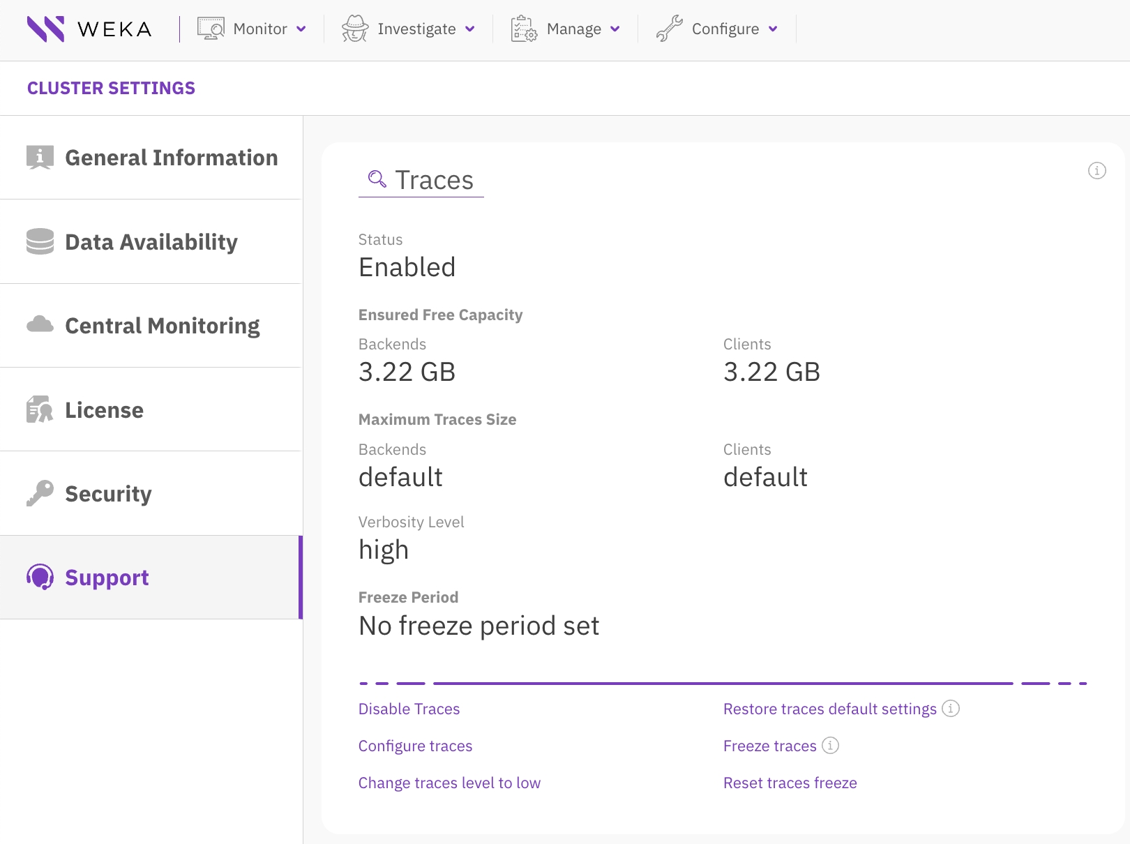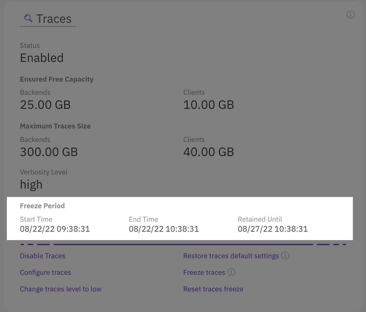 Sometimes you may need to investigate an issue that occurred during a certain period. You can retain the tracing data of that period using the freeze traces action.