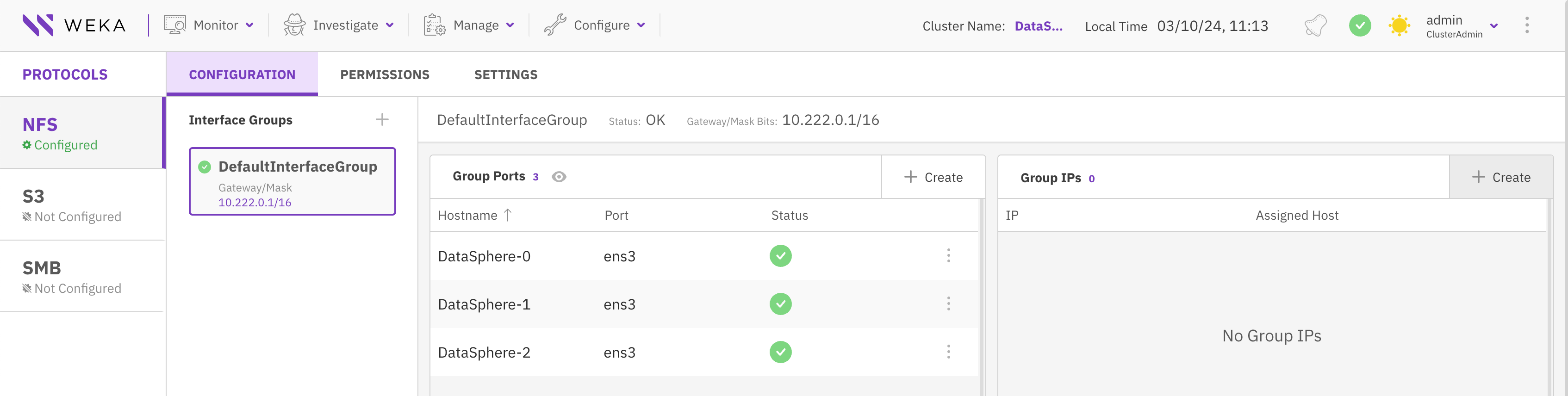 ## **Configure the NFS cluster level** <a href="#create-interface-groups" id="create-interface-groups"></a>