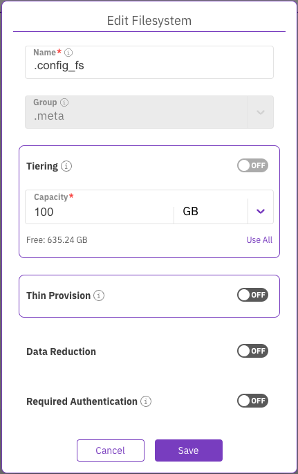 A dedicated filesystem is required to maintain persistent protocol configurations across a cluster. This filesystem is pivotal in orchestrating coherent, synchronized access to files from multiple servers. It is recommended that this configuration filesystem be named with a significant name, for instance, .config_fs. The total capacity must be 100 GB while refraining from employing additional features such as tiering and thin-provisioning.