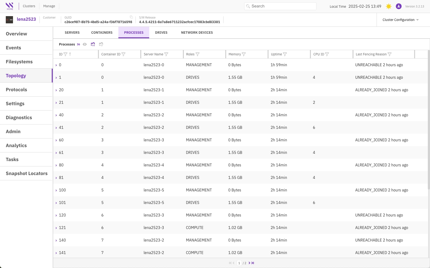 The Filesystems page provides comprehensive information about the configured filesystems in the cluster.