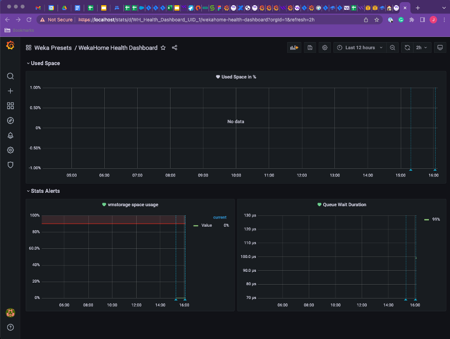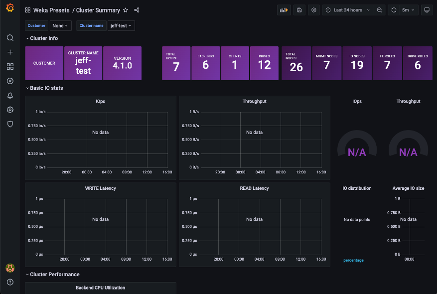You can open the Grafana application to view some of the various performance visualizations directly from the Local WEKA Home.