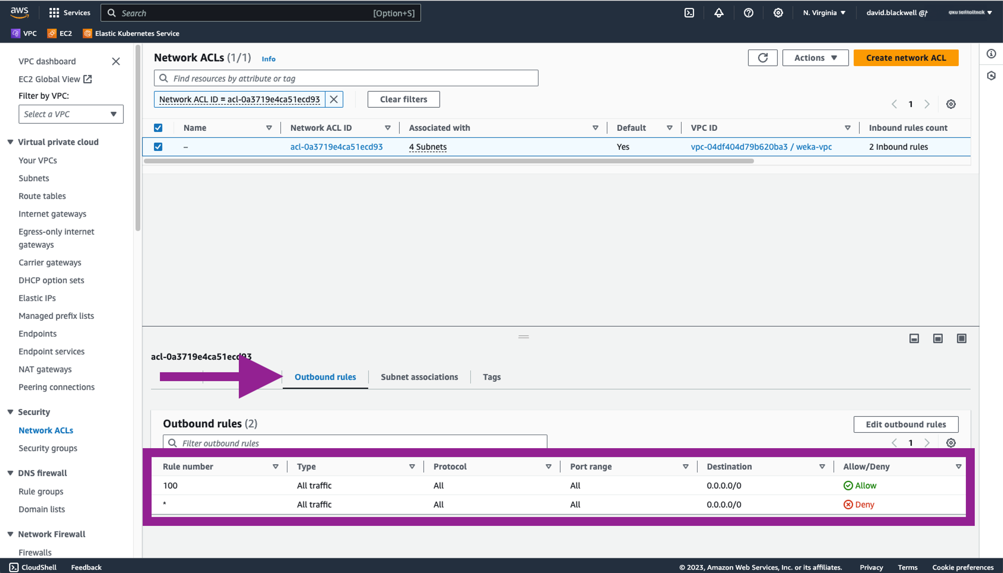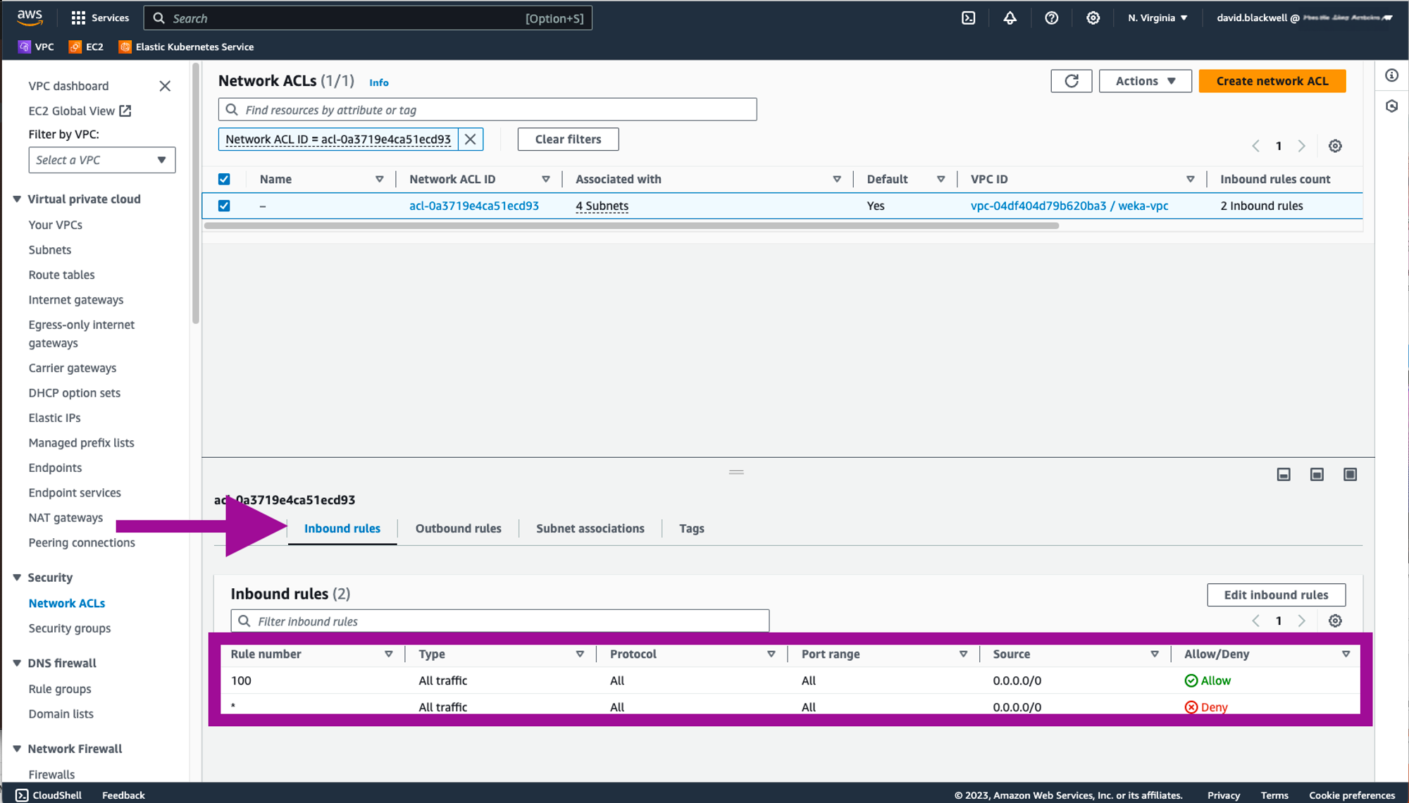 From the Network ACLs page, select the Inbound rules and Outbound rules.