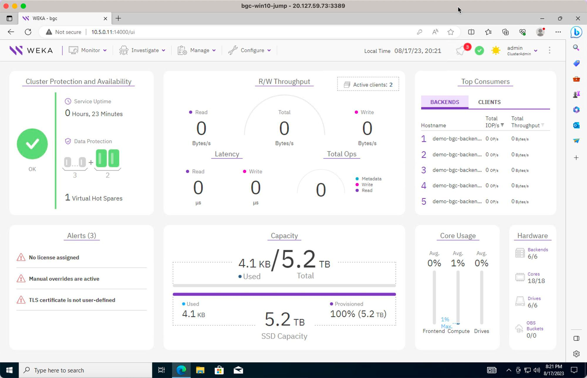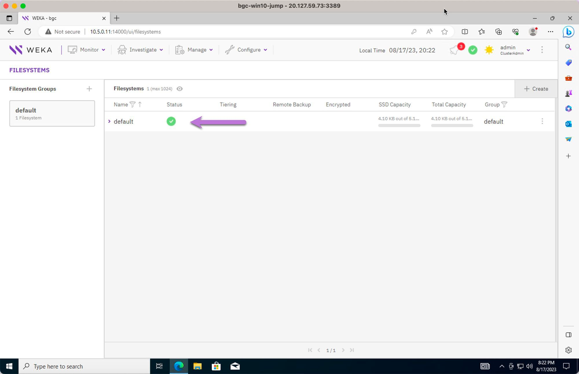 Review the WEKA Cluster:
