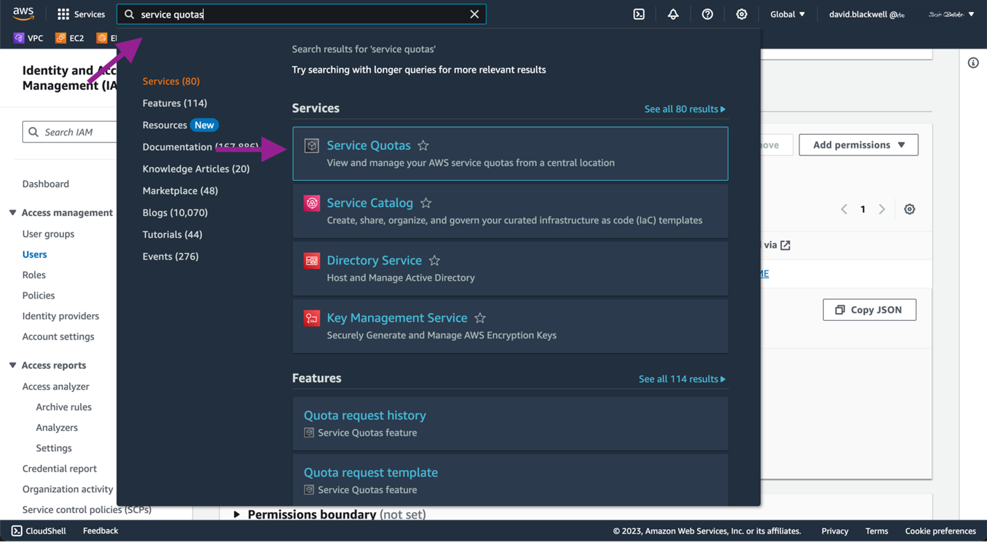 Access Service Quotas: Open the AWS Management Console at AWS Service Quotas. Use the search bar to locate the Service Quotas service.