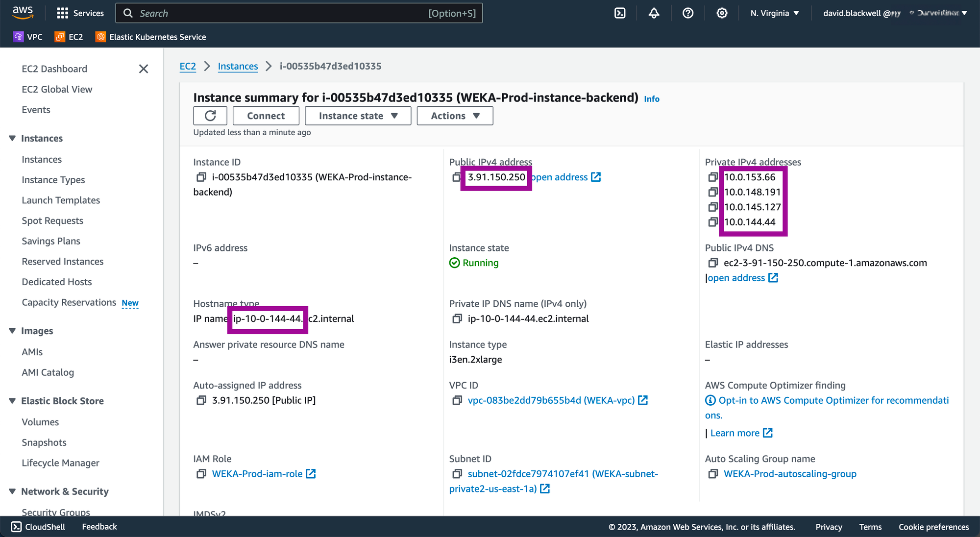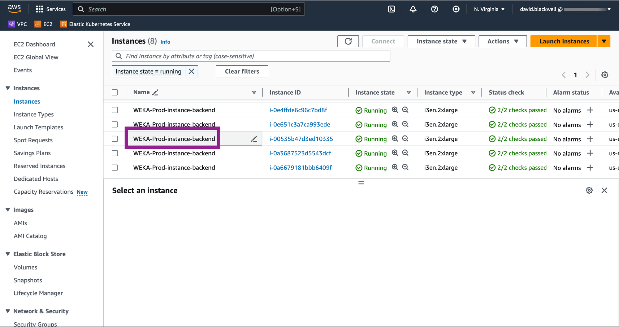Quota increase requests are typically processed immediately. However, requests for a large number of vCPUs or specialized instance types may require manual review by AWS support. Confirm that you have requested and obtained the necessary quotas for all instance types used for WEKA backend servers and any associated application servers running WEKA client software. WEKA supports i3en series instances for backend servers.