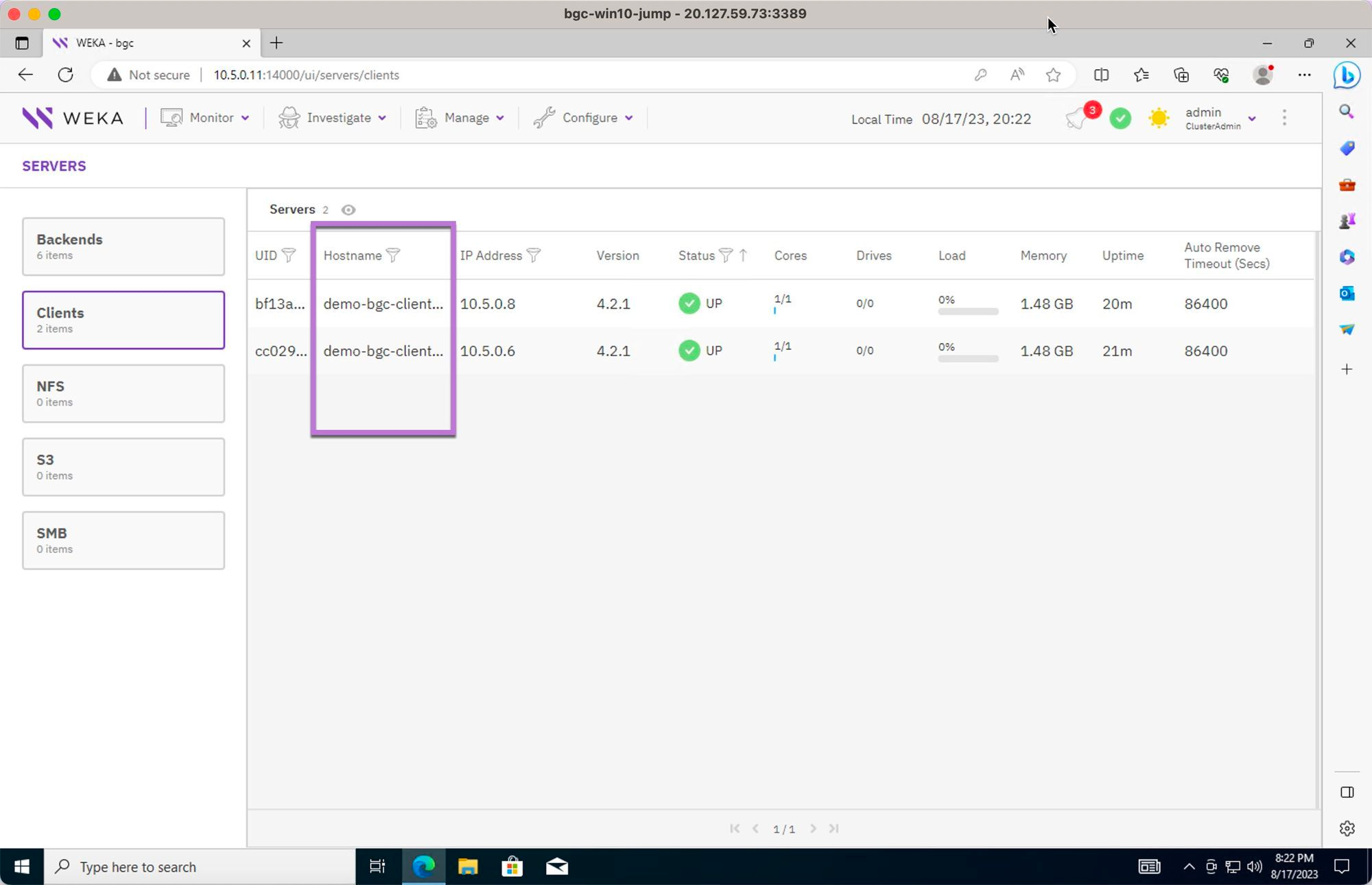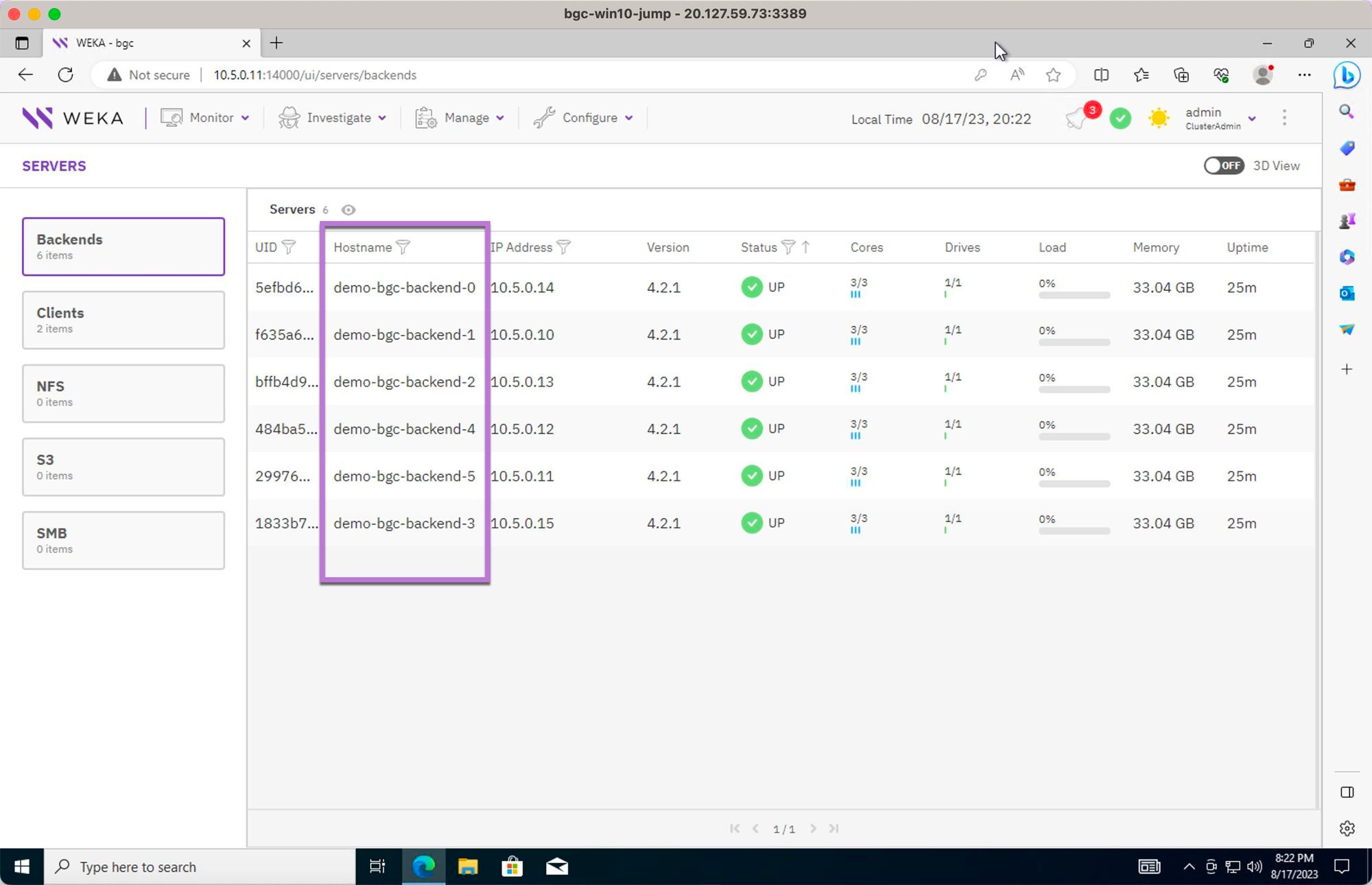 Access the WEKA cluster backend servers