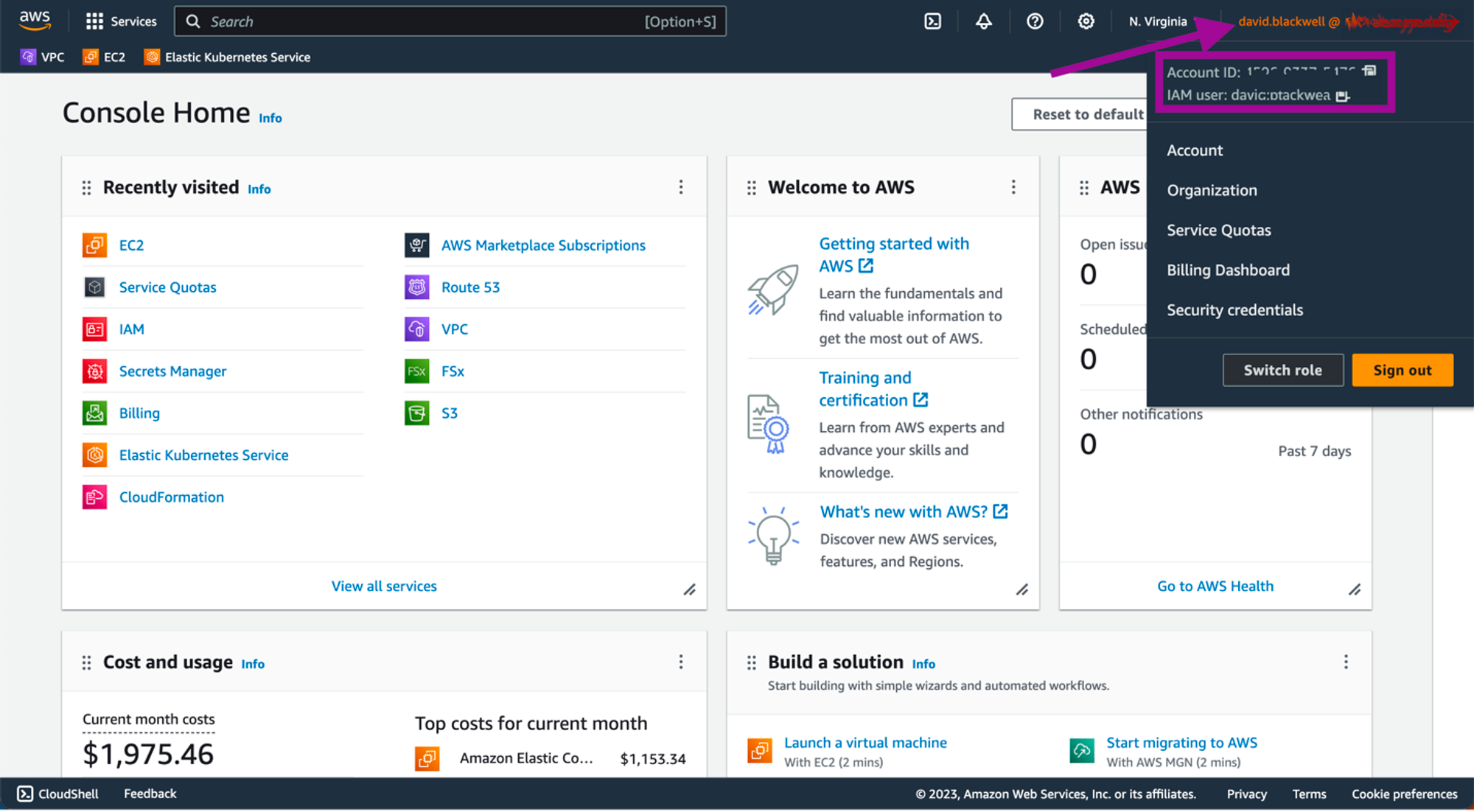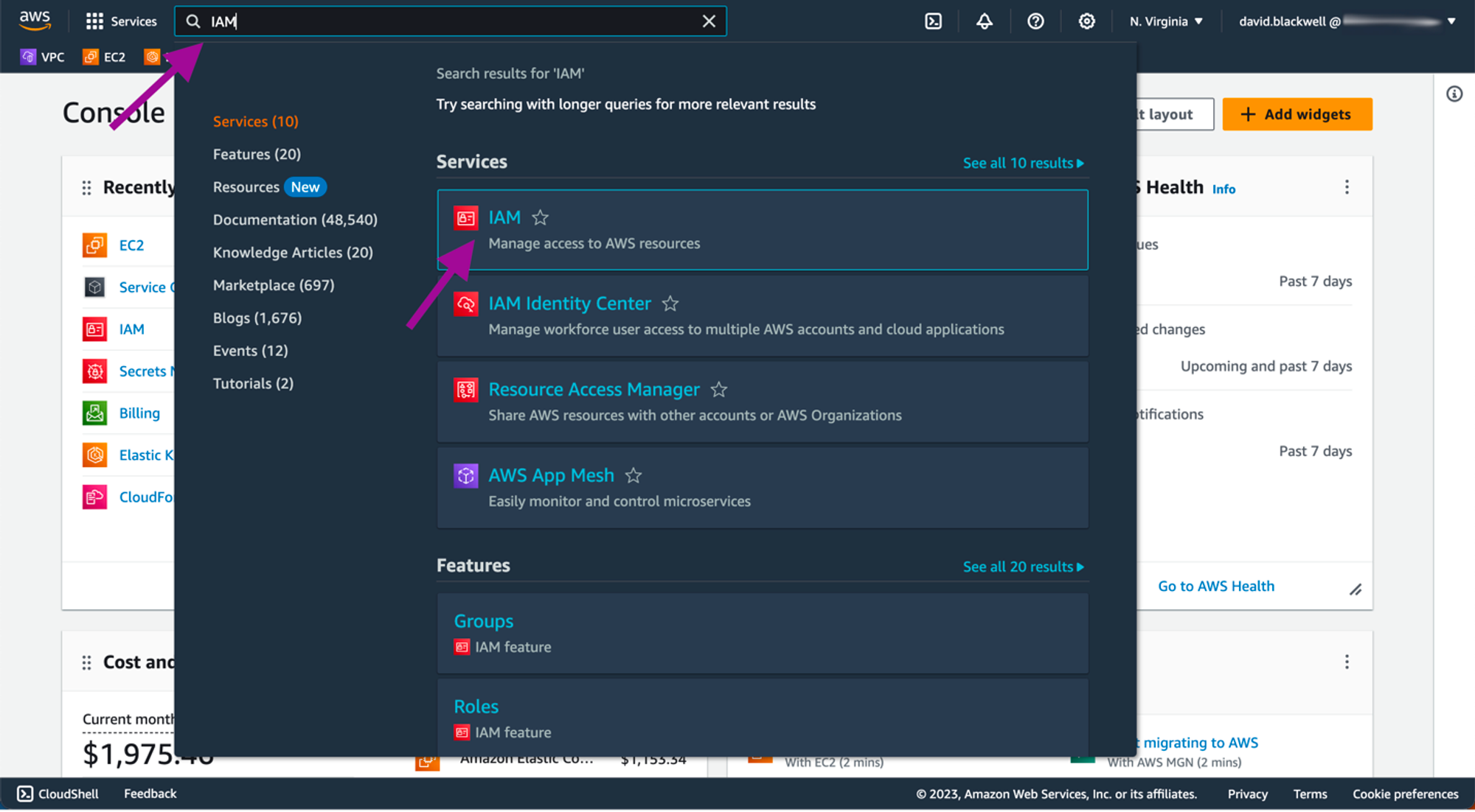 Navigate to the IAM dashboard: From the Services menu, select IAM to open the Identity and Access Management dashboard.