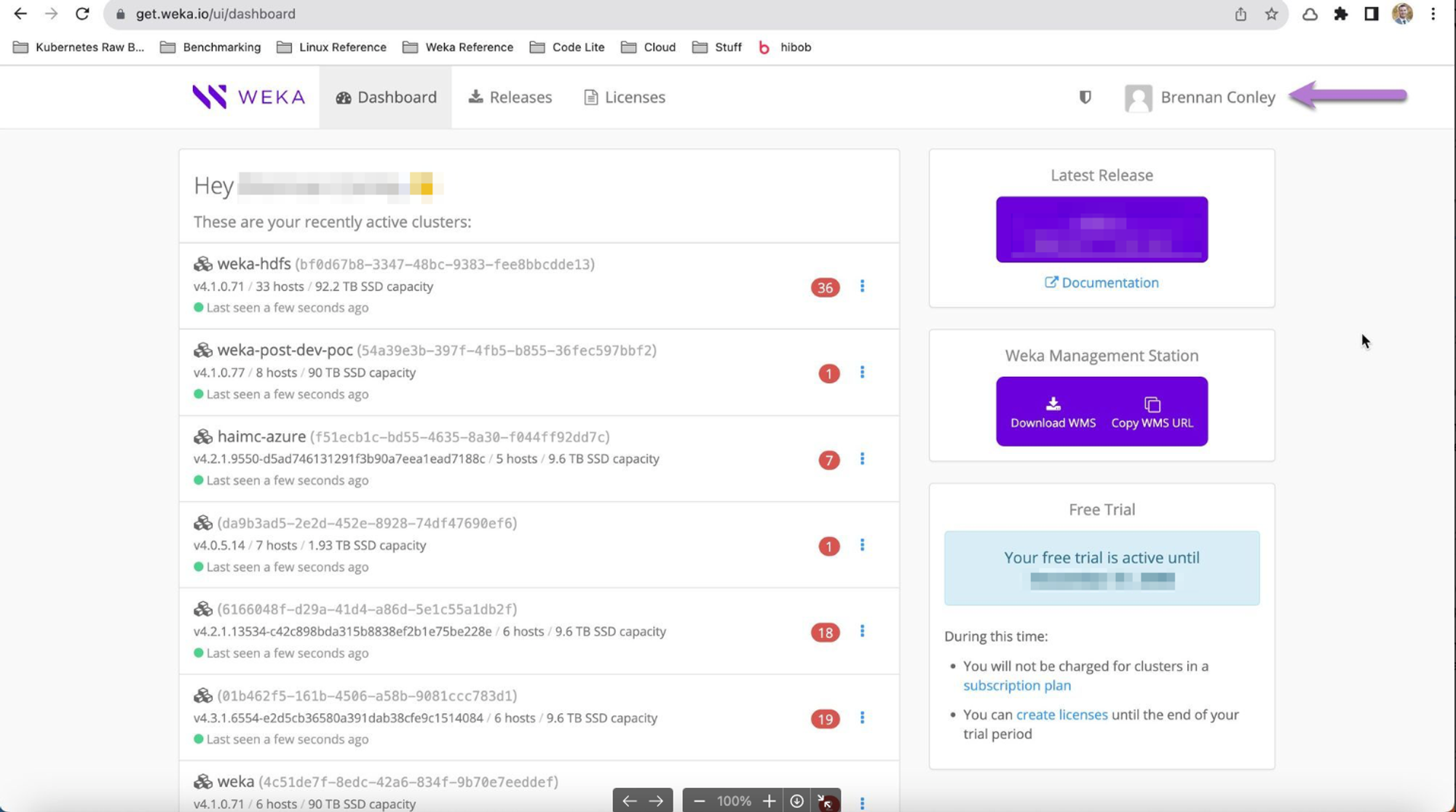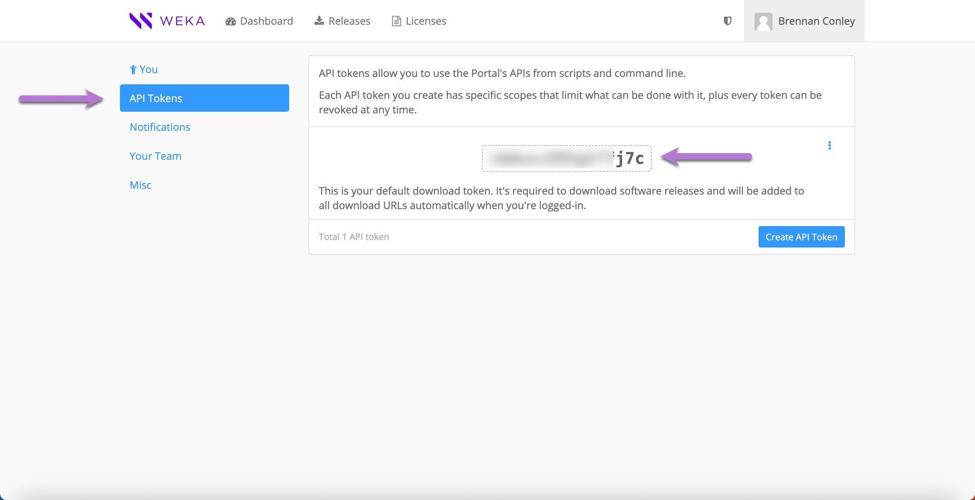 Locate the user’s token on get.weka.io