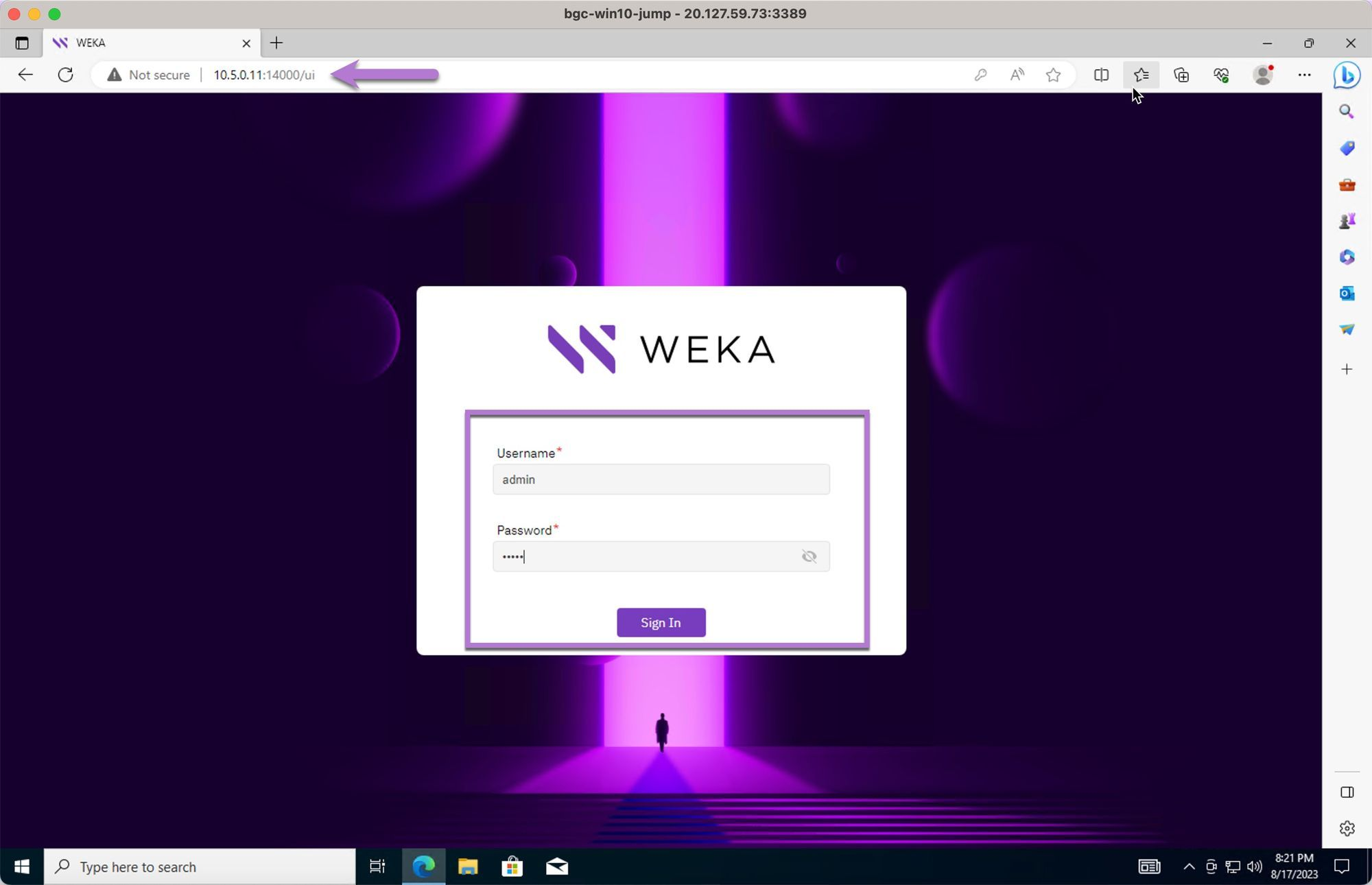 To manage your WEKA cluster through the GUI) you'll need access to a jump box (a system with a GUI) that is deployed in the same VPC and subnet as your WEKA cluster. This allows you to securely access the WEKA GUI through a web browser.