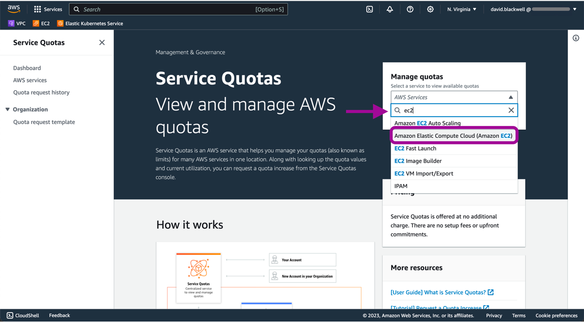 Select Amazon EC2: On the Service Quotas page, select Amazon EC2.