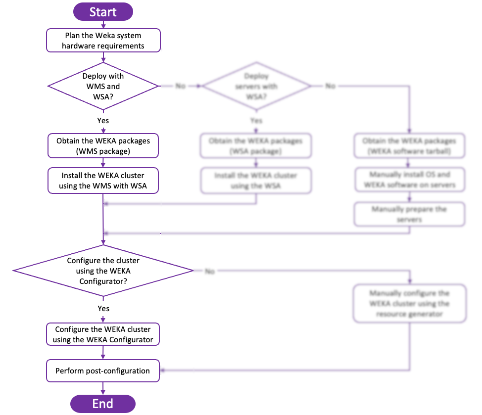 The following summarizes the three workflow paths to install and configure the WEKA cluster.
