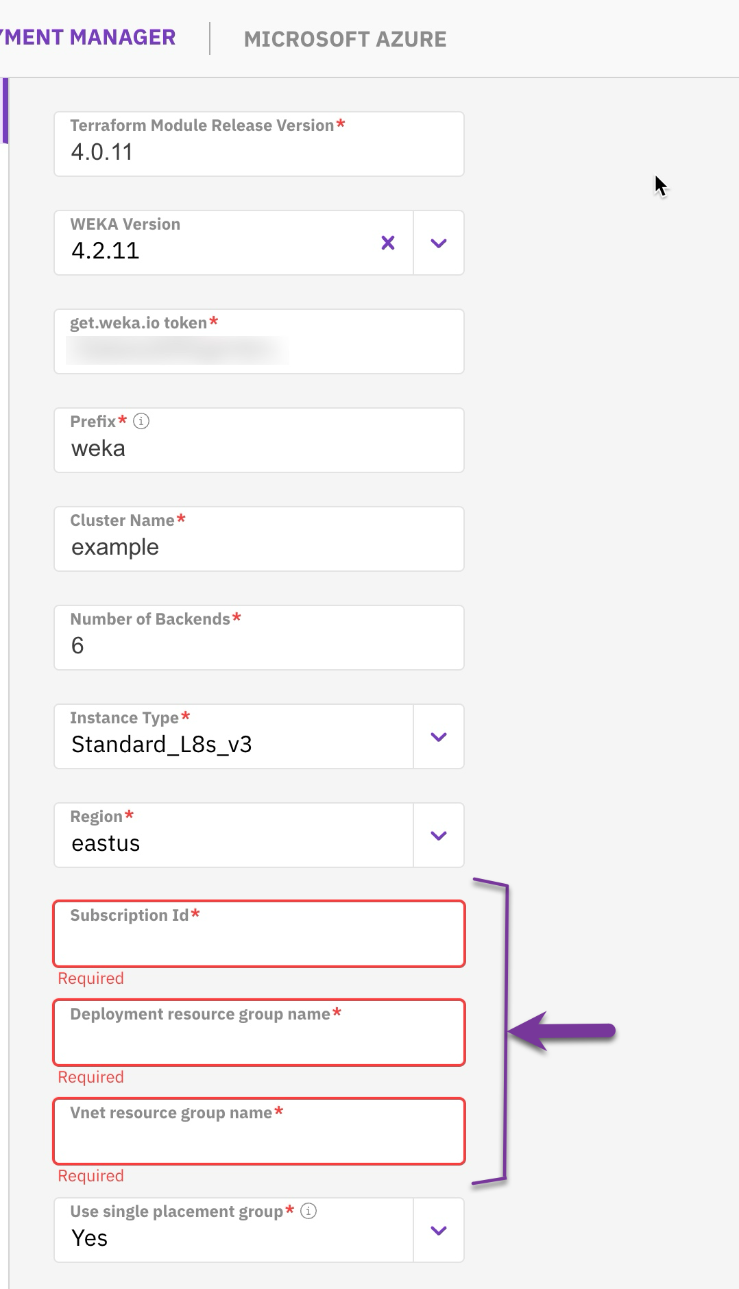 A valid get.weka.io token is required to complete the deployment. Ensure you have this token available before proceeding.