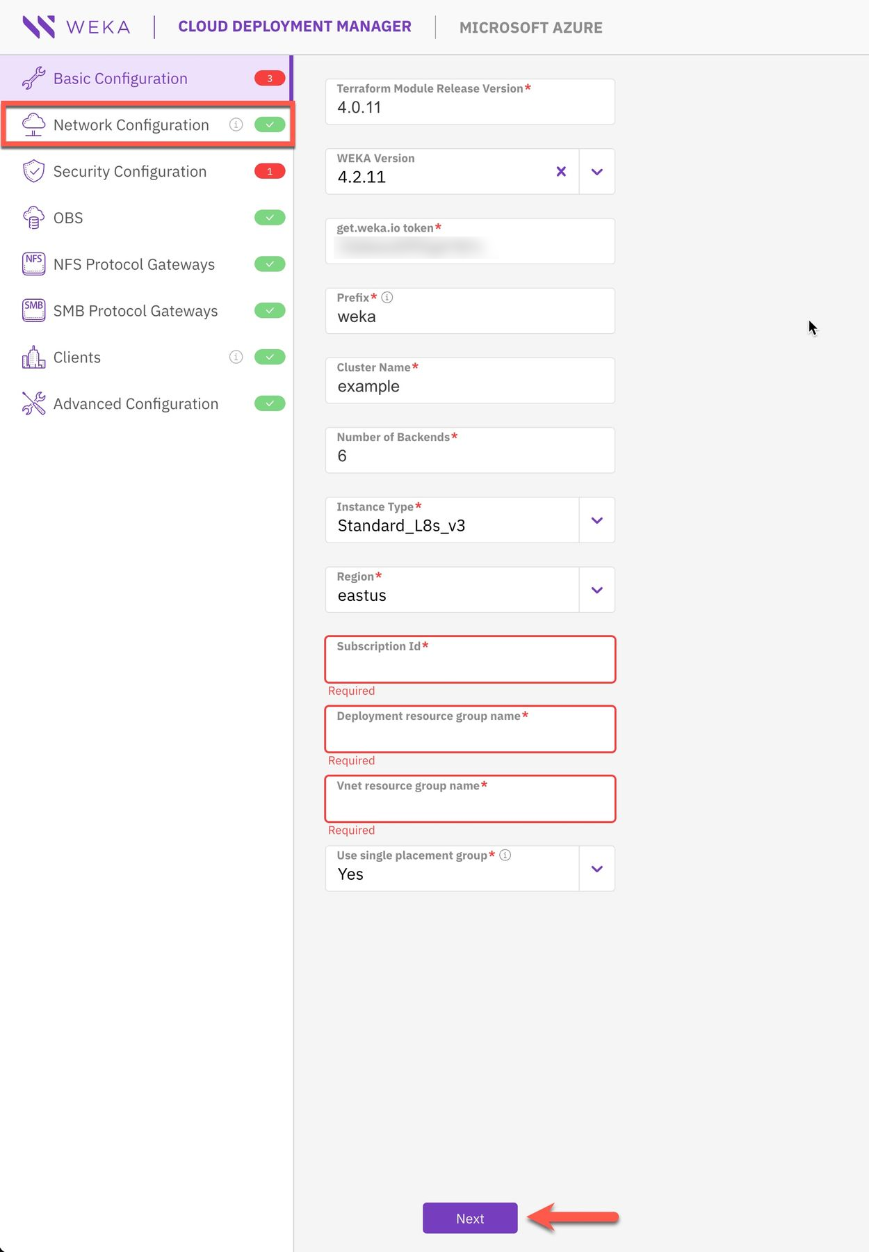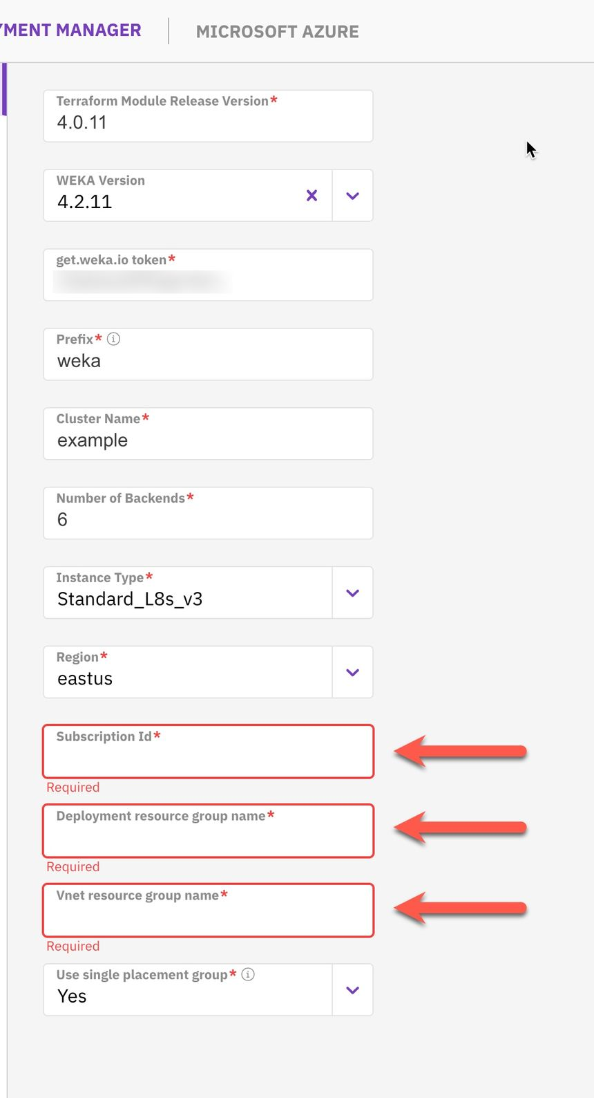 * Ensure you have a get.weka.io token provisioned and available for a successful deployment.