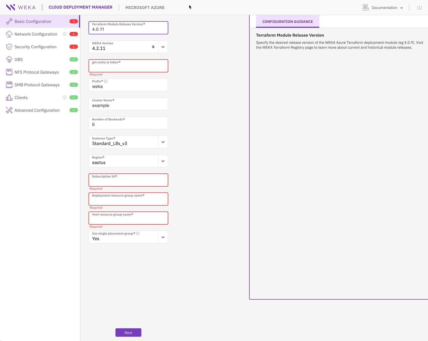 * **Web-hosted solution:** The CDM is fully web-hosted, eliminating the need for downloads or installations. Users can quickly begin configuring their WEKA clusters.