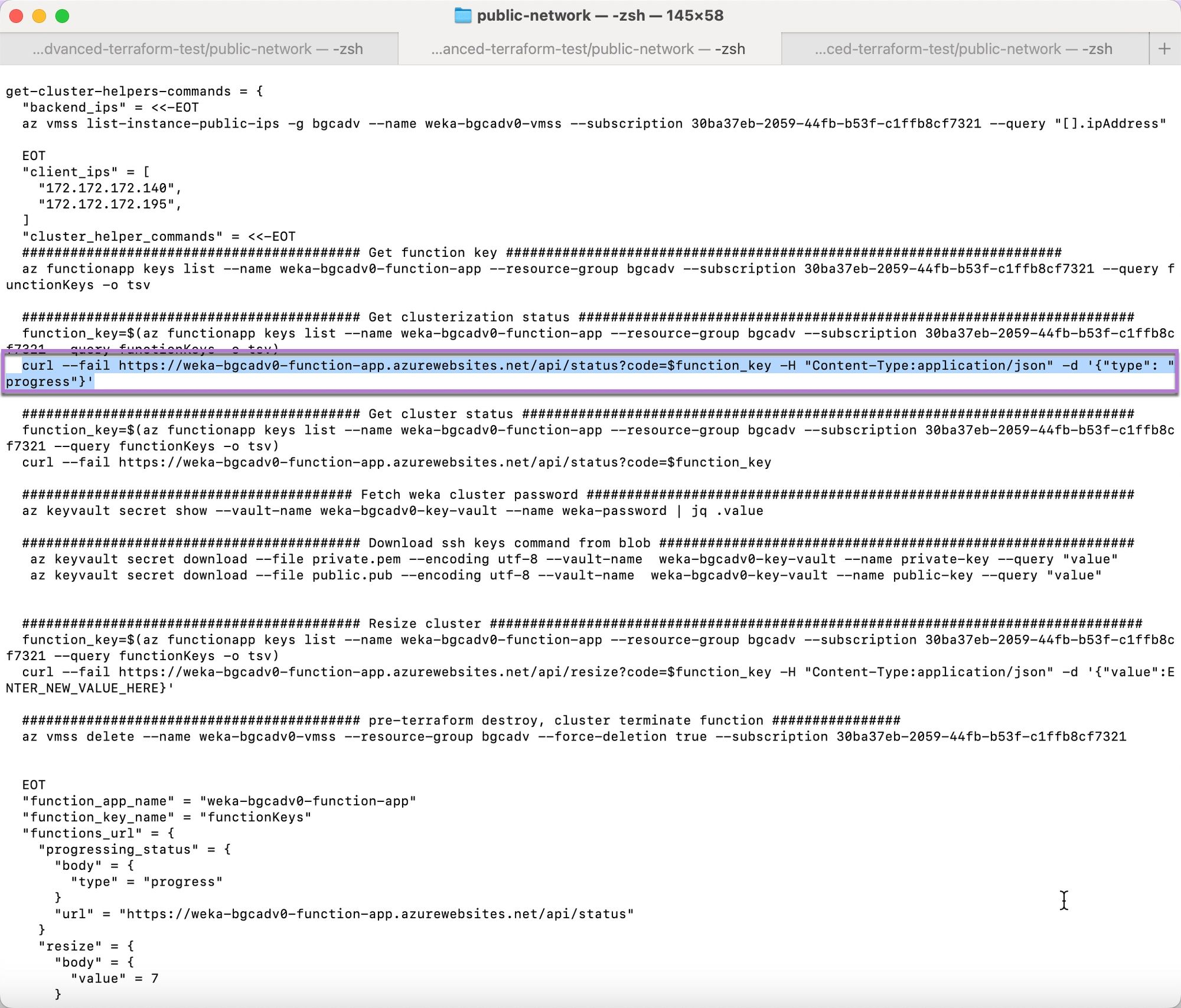 2. Paste the copied command into the terminal, and run it. The public IP addresses display.
