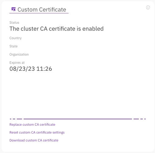 To download the existing CA certificate, select Download custom CA certificate. In the dialog, set a name for the certificate and select Download.