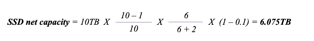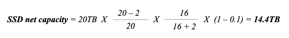 Net (usable) capacity: This is the actual space available on the SSDs for storing user data. The net capacity is derived from the raw capacity and is influenced by several factors: