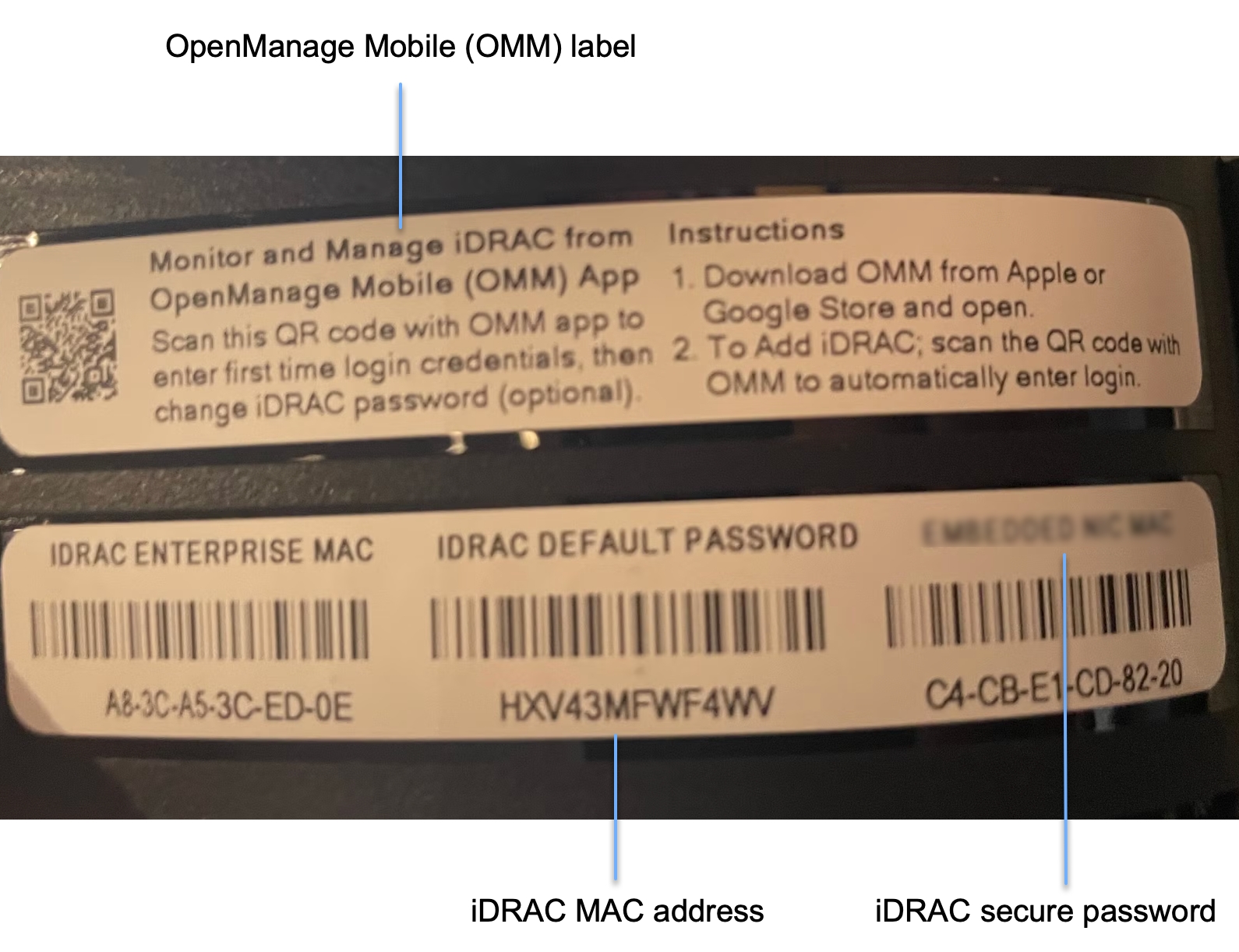 The Information tag is a slide-out label that displays key server details, including the Service Tag, NIC, MAC address, and more. It also includes the iDRAC secure default password; however, note that the password has been reset to WekaService through the ID Module.
